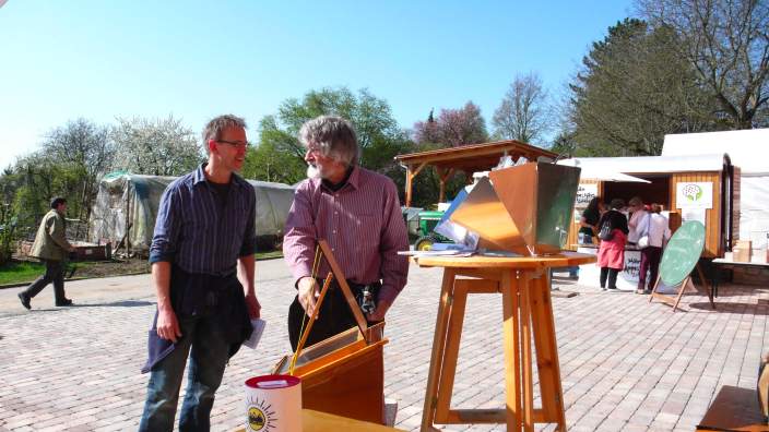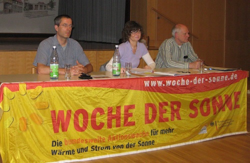 Wolfgang Heins, So`ne Kraft Hochtaunus e.V. (rechts im Bild) und Stephan Wieder, Solarverein Frankfurt und Umgebung e.V.
